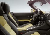 Power is transmitted to the road by 18-inch Boxster wheels. Their distinctive five-spoke design affords an unobstructed glimpse of the braking system’s black four-piston aluminium monobloc fixed calipers. And you can keep an eye on the pressure in all four tyres thanks to tire pressure monitoring (TPM). The large air inlets illustrate character. The sound produced by the central tailpipe in brushed stainless steel is unmistakably Porsche.